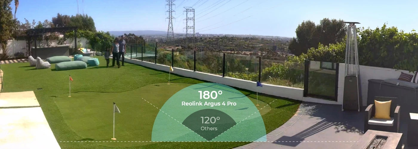 مجال رؤية مذهل بزاوية 180 درجة، يمنحك أكثر من ضعف منظور الكاميرا العادية. التقط أدق تفاصيل أي لحظة بجودة صورة فائقة الوضوح بدقة 4K ومرونة لا مثيل لها، حتى في الليل.