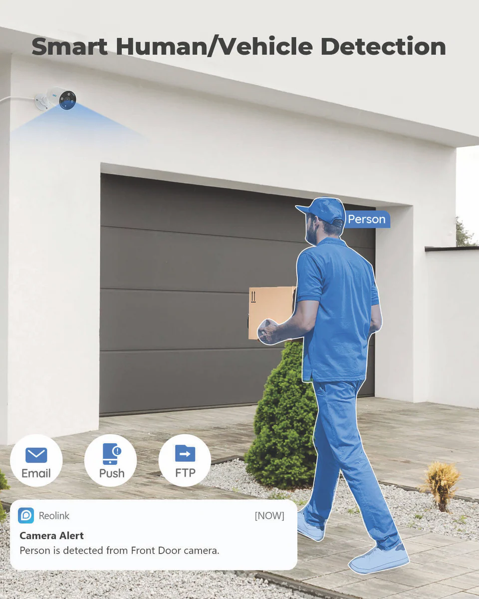 إذا كنت ترغب في حفظ مقاطع الفيديو لفترة أطول أو إدارة عدة كاميرات، يمكنك ببساطة توصيل هذه الكاميرا بجهاز تسجيل فيديو شبكي (NVR) متوافق من Reolink أو نظام كاميرات مراقبة.
