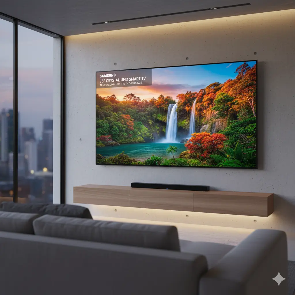 ادخل عالم التفاصيل النابضة بالحياة مع شاشة سامسونج الذكية 75 بوصة – موديل 4K Upscaling LED HDR Smart TV التي تجمع بين قوة الأداء، جودة الصورة الفائقة، والتصميم العصري الراقي.